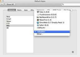 RCDefaultApp er en indstillinger, der giver brugeren mulighed for at indstille standardapplikationen, der bruges til forskellige URL-skemaer, filtypenavne, filtyper og MIME-typer. MacOS X bruger udvidelses- og filtypeindstillingerne til at vælge applikationen, når en fil åbnes i Finder, mens Safari og andre applikationer bruger URL- og MIME-typeindstillingerne på andre tidspunkter for indhold, der ikke er relateret til en fil (f.eks. En ukendt URL-protokol, eller en mediestream).