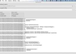 Searches the contents of text files and shows results by line number.