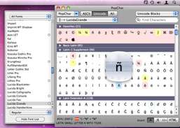 Type special characters without knowing the keyboard combos and explore fonts.