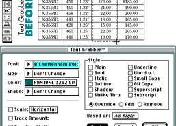 Select and modify text attributes on Quark pages using a unique "marquee" method of text selection.