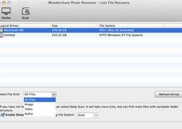 Wondershare Photo Recovery for Mac -ohjelma mahdollistaa kuvien pelastamisen mistä tahansa tallennuslaitteesta tai digitaalikamerasta. Tämä Mac-valokuvien palautusohjelmistotyökalu palauttaa kaikki kadonneet, poistetut, muotoillut ja saavuttamattomat valokuvasi, videot ja musiikkitiedostot Macilta tai muusta tallennuslaitteesta. Se tarjoaa täydellisen kuvan palautuksen mistä tahansa Mac-pohjaisesta kiintolevystä, iPodista, USB-asemasta, ulkoisesta kovalevystä, digitaalikamerasta ja muista tallennusvälineistä. Helppokäyttöisellä käyttöliittymällä jopa aloittelevat käyttäjät voivat palauttaa valokuvia Mac-tietokoneelta hyvin helposti muutamalla hiiren napsautuksella. Lost File Recovery - Palauta poistetut valokuvat, videot ja musiikkitiedostot vain Mac-kiintolevyltä, jossa on HFS + -tiedostojärjestelmä. Raw Recovery - Deep scan ja palauta kadonneet valokuvat, videot ja musiikkitiedostot sekä Mac-kiintolevyllä että muilla kannettavalla tallennuslaitteella, joissa on HFS + / FAT / NTFS / NTFS5 -tiedostojärjestelmä