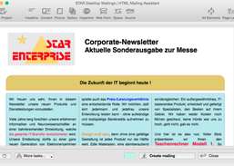 O planejador embutido automaticamente envia mails recorrentes agendadas, com base quer em datas fixas ou em datas variáveis (x dias após um determinado usuário inscrito em uma lista de discussão). O auto-serviço de gerenciamento de usuário remoto é uma característica única de Star Papéis de Correspondências, porque ele permite que você tenha as suas próprias listas de discussão com capacidades de assinatura online - mas sem o hazzle de componentes do servidor e verso. ESTRELA desktop Correspondências utiliza a sua própria conta de e-mail para tirar assinaturas e lista de remoções. É suportado comercialização permisson baseada em opt-in e métodos de opt-out. Os usuários podem até mesmo solicitar e editar seus dados de perfil, assim como com uma solução mailing list "comum". No entanto - não há necessidade de scripts ou aplicativos no seu servidor, nenhum dado pessoal tem de ser loja na nuvem. Isso protege a privacidade da sua customers.What de novo nesta versão: Built-in editor HTML - cria HTML compatível com a maioria dos clients.Create cupom e códigos de promoção e-mail em HTML com capacidade no gerenciamento de usuários fly.Improved self-service ( Nenhum componente de servidor necessários-sided) .Easier configuração de contas de correio .
