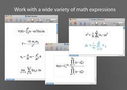 O MoboMath permite criar expressões matemáticas para seus aplicativos favoritos em seu próprio manuscrito. Usando um tablet, trackpad ou até mesmo um mouse, basta escrever uma equação como faria normalmente, pressionar Enter para convertê-la em matemática formatada e copiá-la ou arrastá-la seu aplicativo de destino para avaliação, plotagem ou documentação. DESTAQUES - Escreva expressões matemáticas sem esforço, sem entradas tediosas no teclado ou na paleta. - Use equações onde quer que você precise - em documentos técnicos, apresentações ou em páginas da web. Avalie ou plote-os em produtos computacionais. As equações são traduzidas no formato correto para cada destino e podem ser reutilizadas em aplicativos. - Crie expressões para o Microsoft Word, o Mathematica, o Maple, o MathMagic, o MathType e produtos como o iWork que usam o MathType como um editor de equações. Use os formatos MathML e TeX do MoboMath para suportar uma ampla gama de outros aplicativos baseados em padrões. - Facilite a edição de alterações nas equações criadas ou importadas. Adicione, exclua, insira, substitua ou reorganize partes de uma expressão usando gestos de caneta simples ou use a ponta da borracha da caneta para remover traços de tinta.- Personalize o MoboMath para os tipos de expressões que você normalmente usa, da álgebra básica ao cálculo avançado. Vetores, matrizes, integrais, diferenciais, limites, faixas, operadores lógicos, caracteres gregos e muito mais estão disponíveis. - Aproveite o suporte otimizado de caneta e tablet do MoboMath. Para facilitar o acesso, as ferramentas que você mais usa estão apenas a um toque de distância na barra de ferramentas do MoboMath.
