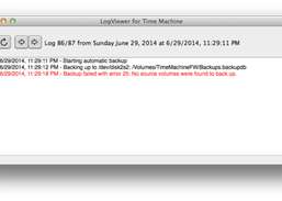 С LogViewer for Time Machine вы можете легко просматривать журналы текущих и предыдущих резервных копий. Любая ошибка будет отображаться красным цветом. Есть активная резервная копия Time Machine? Просто нажмите кнопку обновления, чтобы отслеживать, что происходит за кулисами. Вы можете просматривать различные журналы резервного копирования, используя кнопки со стрелками влево и вправо.